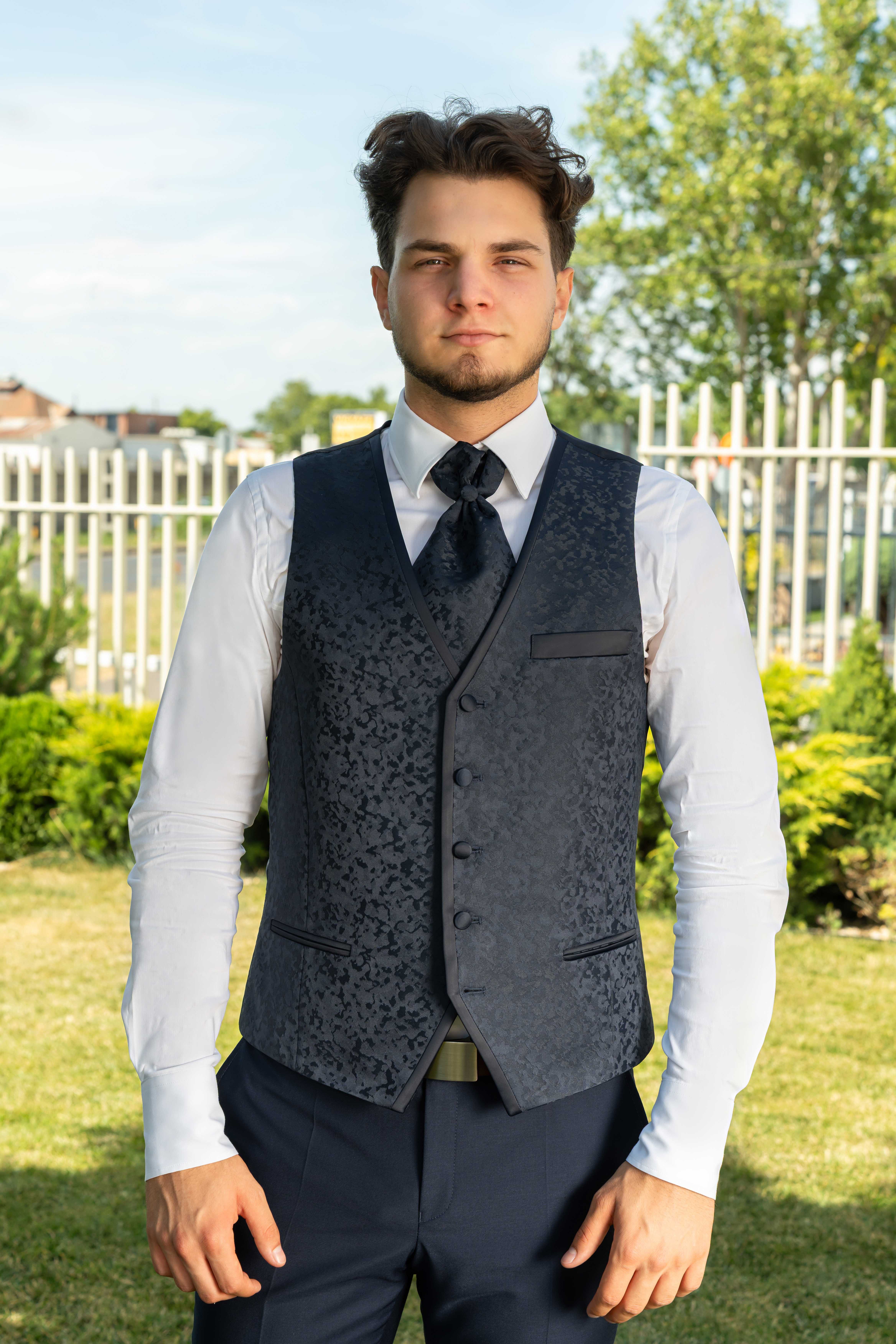 Sötétkék absztrakt mintás mellény