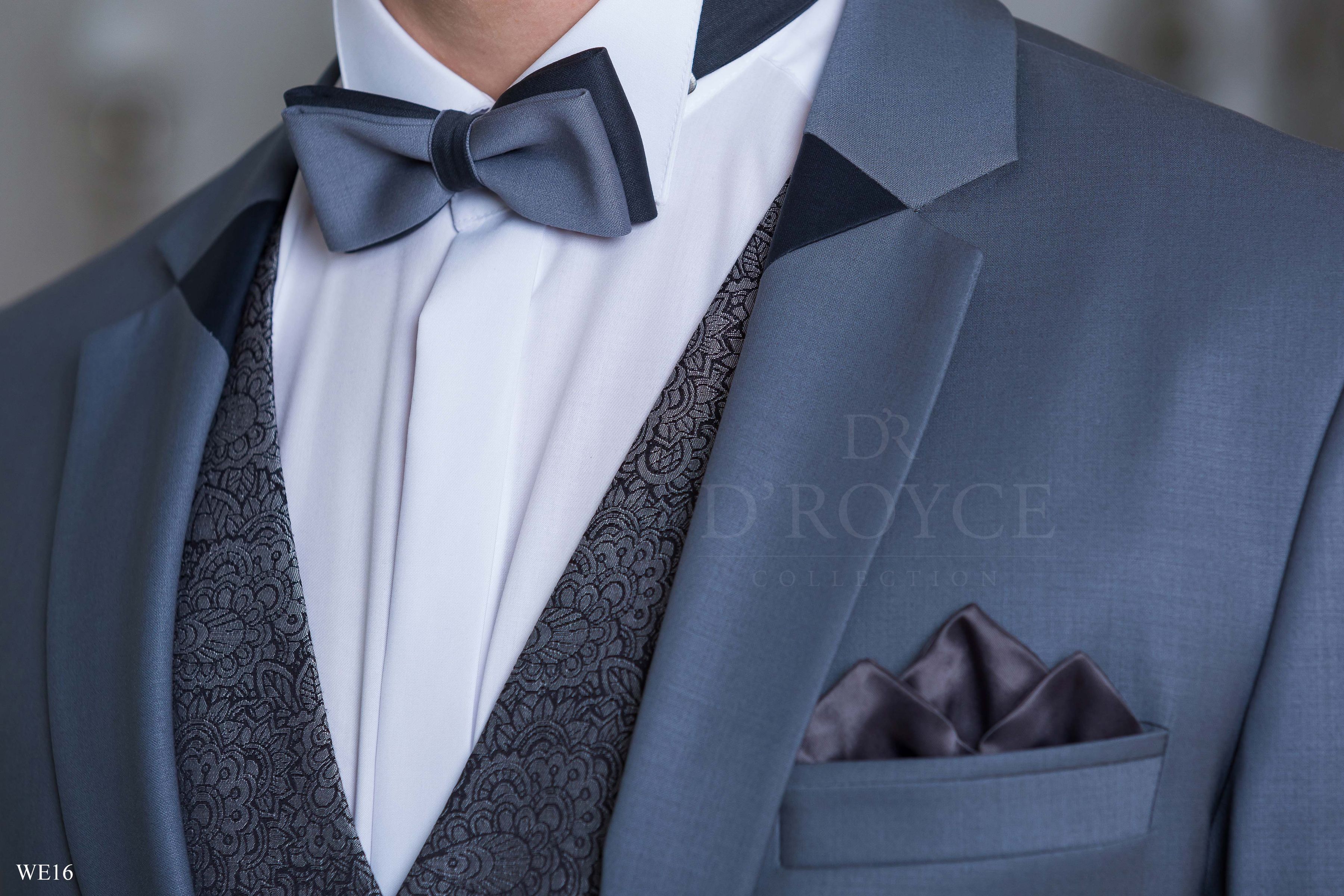 Szürke öltöny ezüst, mintás szatén mellénnyel