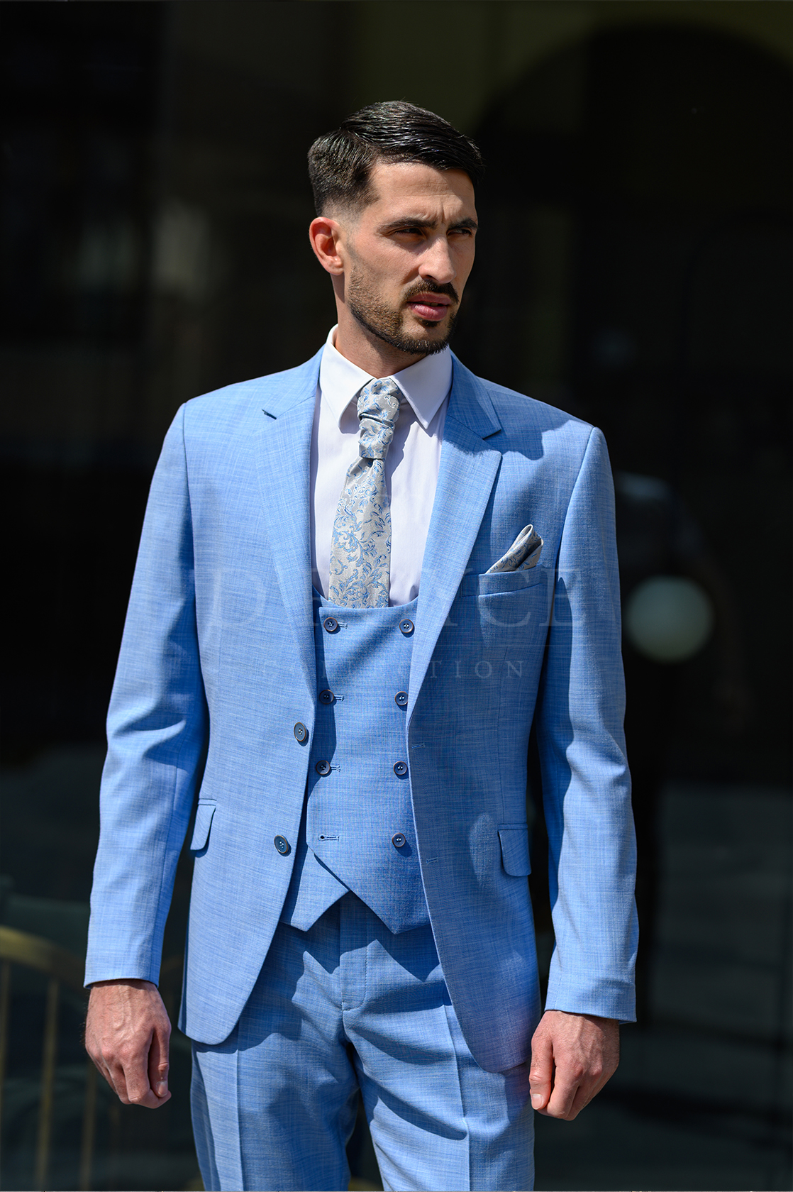 Világos kék öltöny