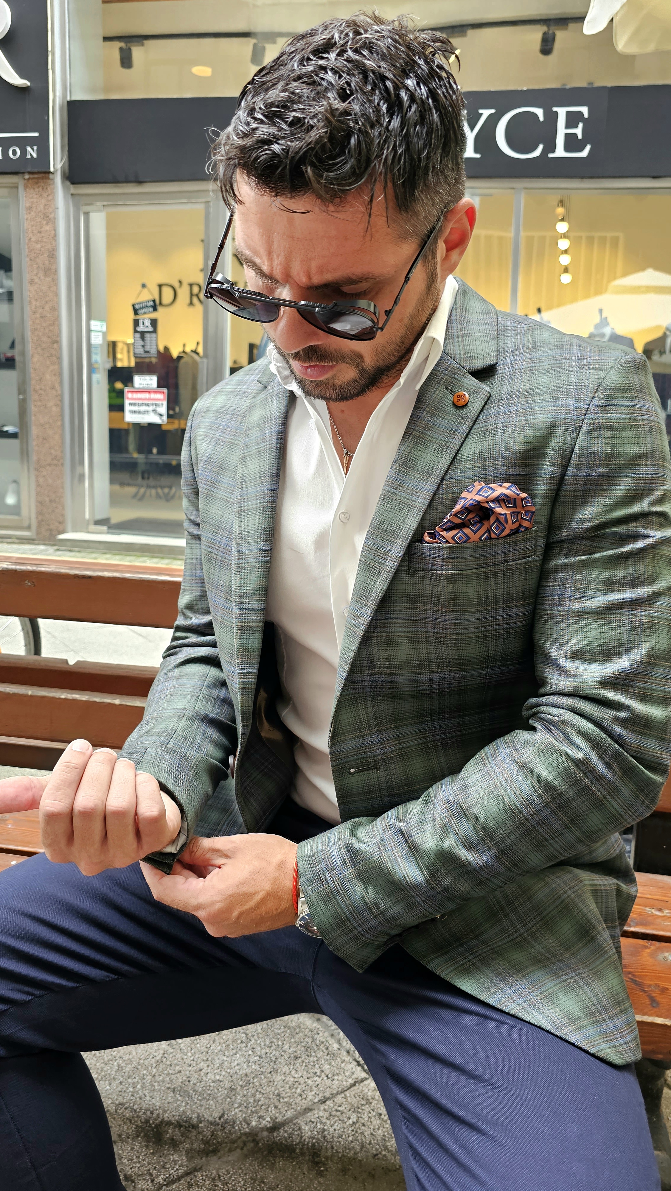 Zöld-barna kockás sportzakó
